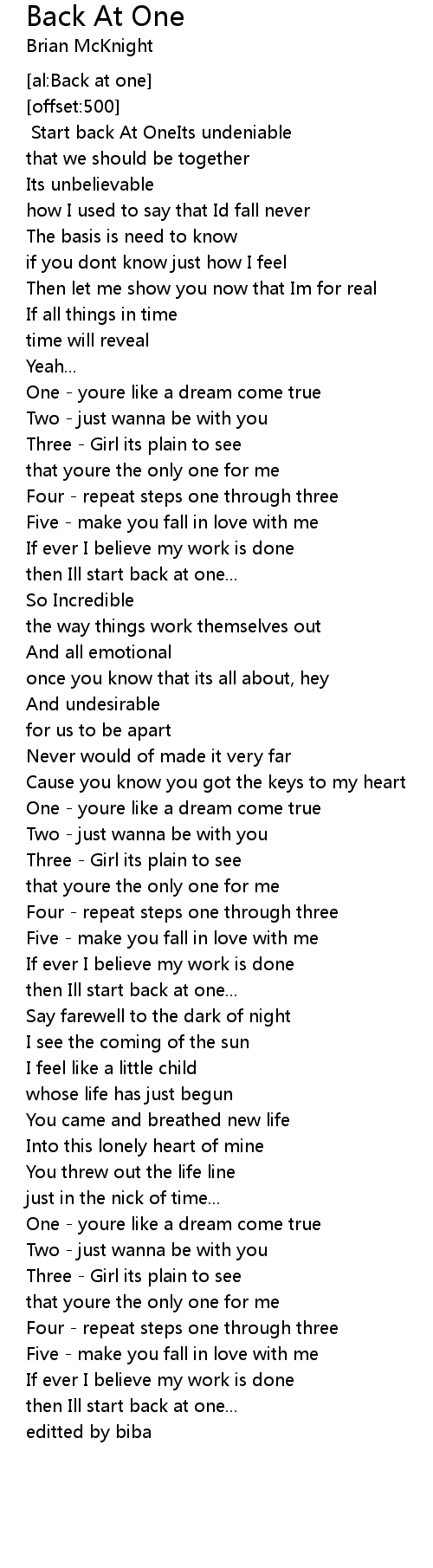One - youre like a dream come true |