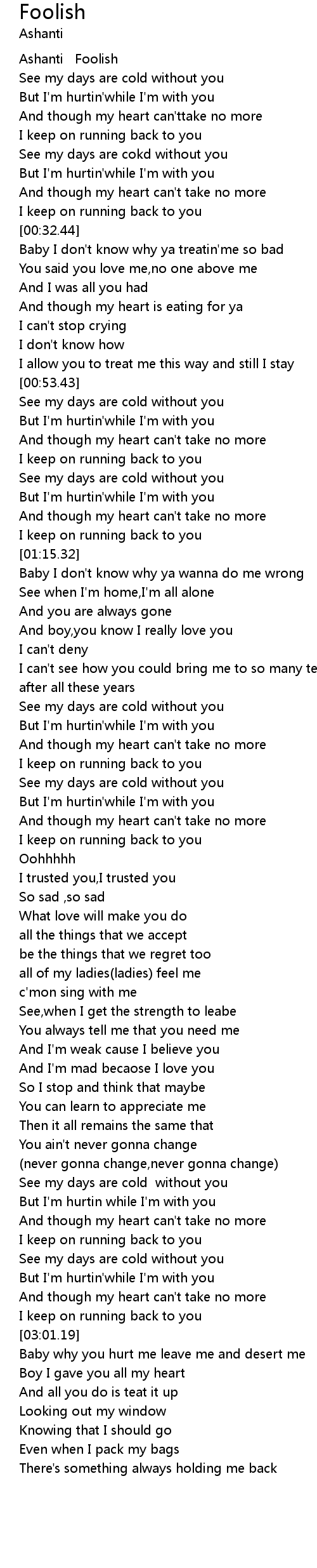 | [00:33.13] | Baby I don't know why ya treatin'me so bad |