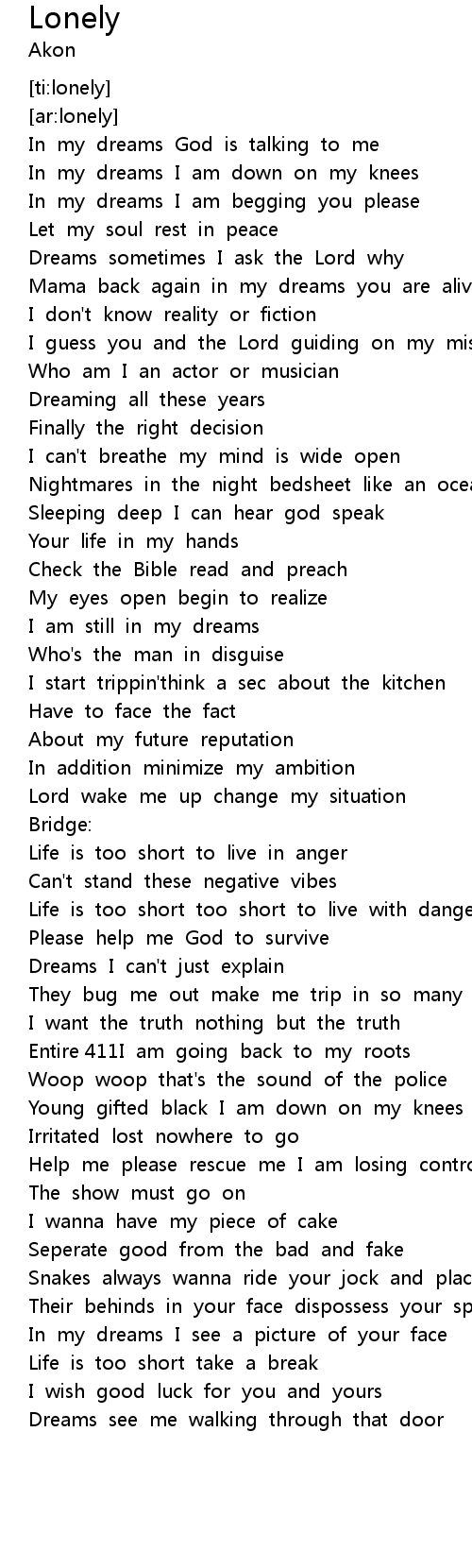 | [01:03.383] | Dreams sometimes I ask the Lord why |