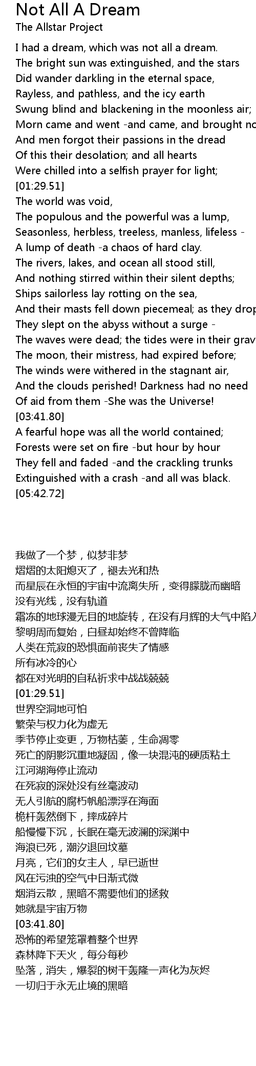 I had a dream, which was not all a dream. |