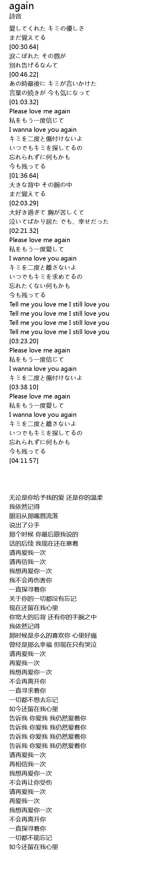 | [03:23.72] | Please love me again |
