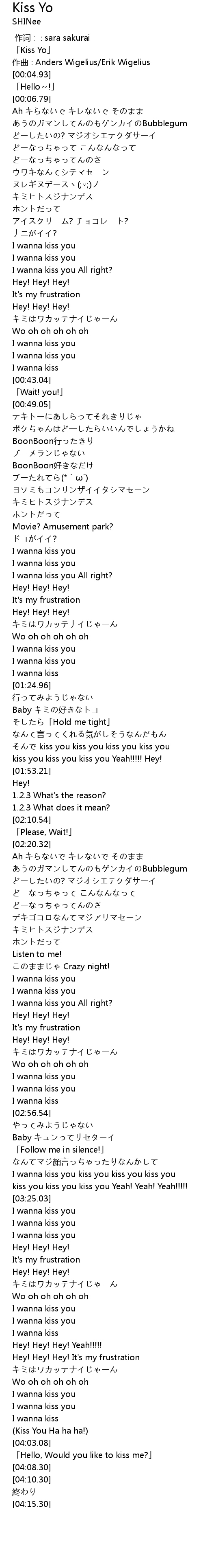 | [03:17.43] | I wanna kiss you kiss you kiss you kiss you |