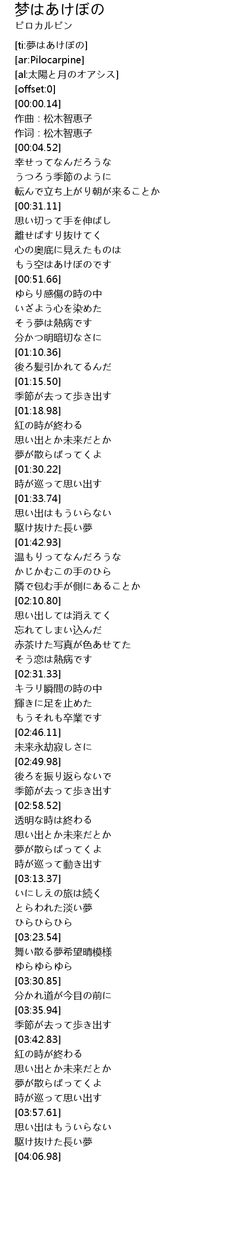 | [03:24.10] | 舞い散る夢希望晴模様 |