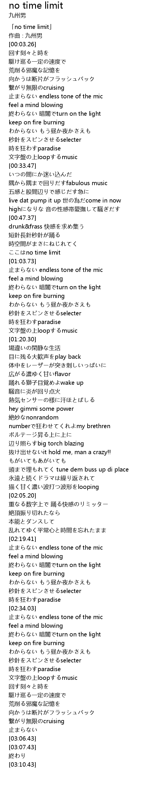 | [01:38.97] | numberで狂わせてくれよmy brethren |