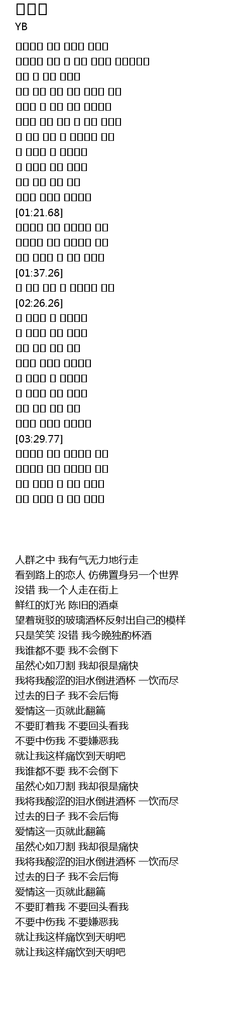 我将我酸涩的泪水倒进酒杯 一饮而尽 |