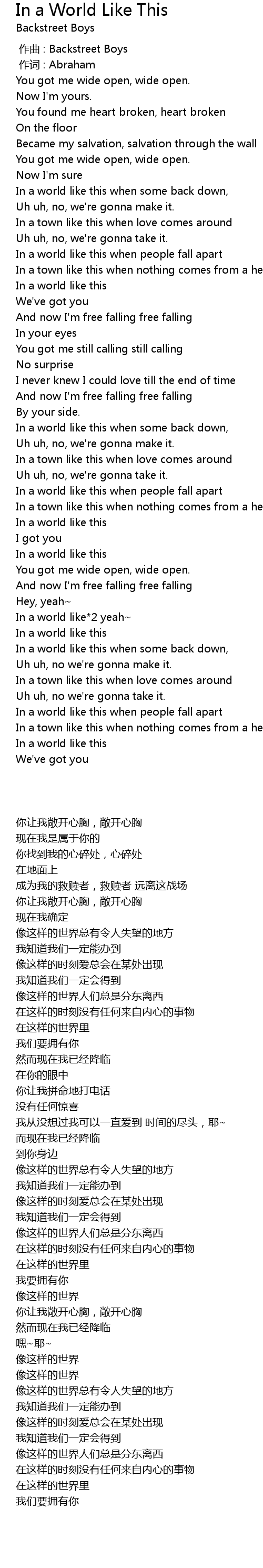 | [00:00.00] | zuo qu : Backstreet Boys |