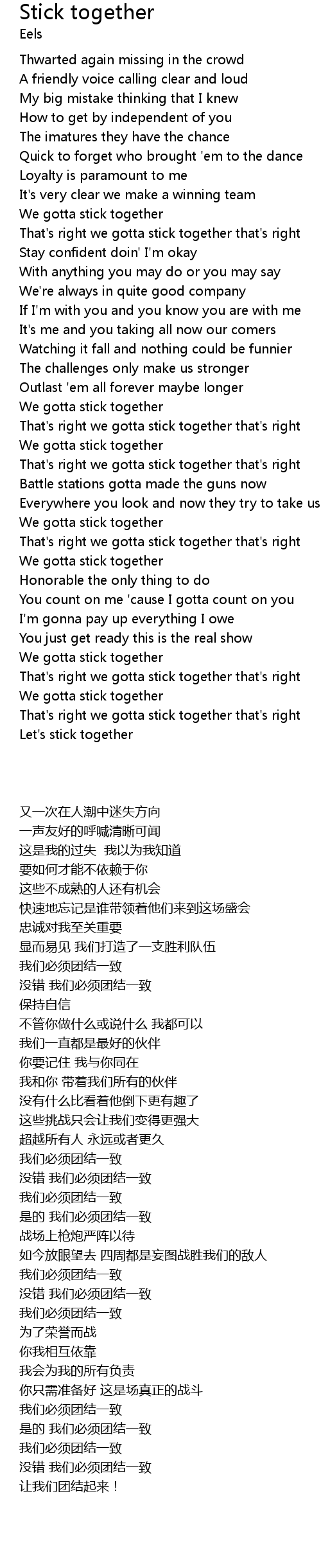 Let's stick together |