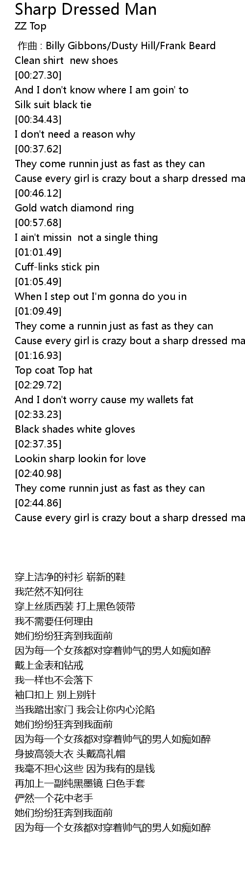| [02:45.80] | Cause every girl is crazy bout a sharp dressed man |
