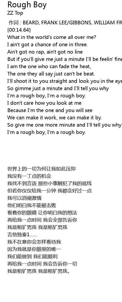 | [01:30.85] | I'm a rough boy, I'm a rough boy. |