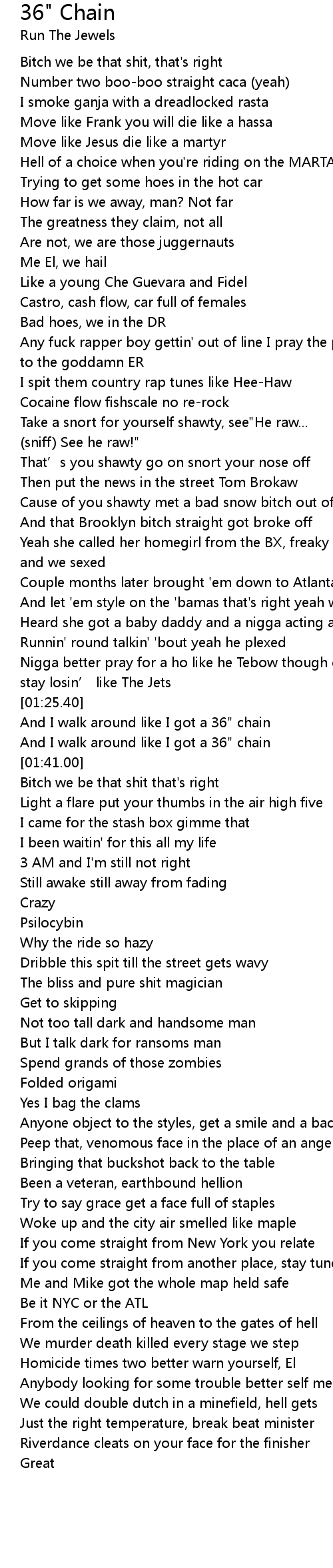 | [01:31.63] | And I walk around like I got a 36" chain |