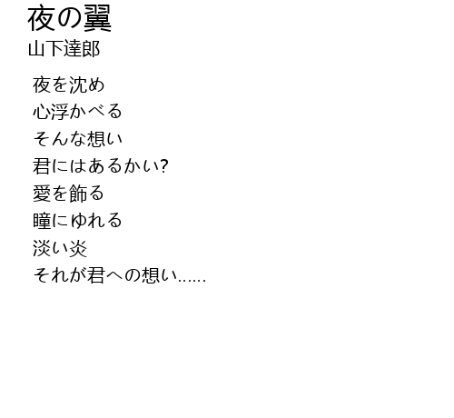 | [00:00.500] | 夜を沈め |