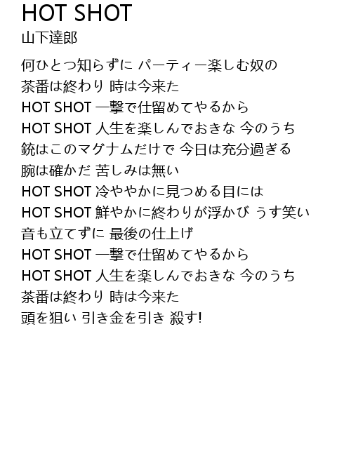 | HOT SHOT 鮮やかに終わりが浮かび うす笑い | |