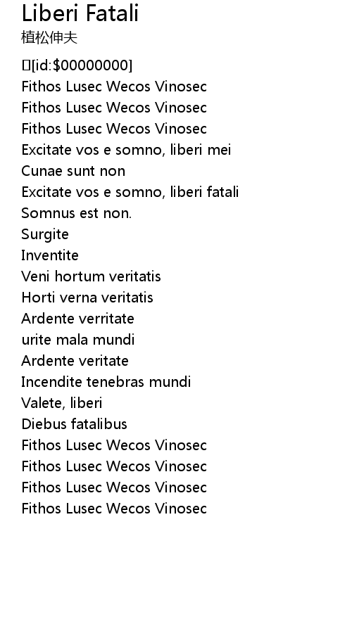 | [01:09.708] | Excitate vos e somno, liberi fatali |