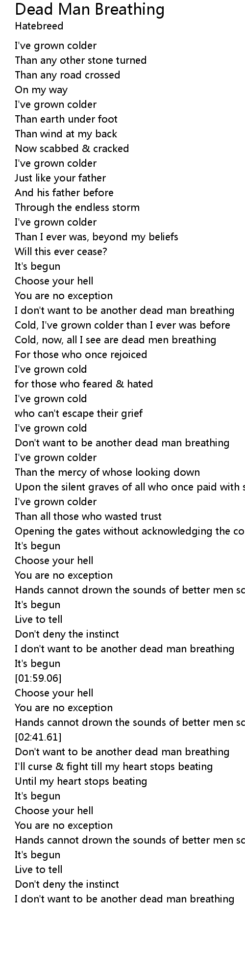 I don't want to be another dead man breathing |