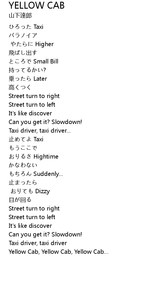 | [02:55.65] | Yellow Cab, Yellow Cab, Yellow Cab |