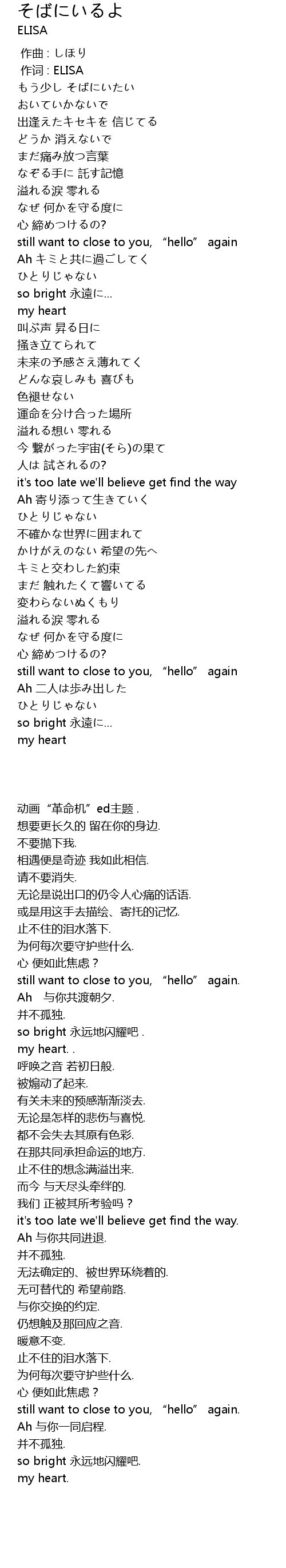 | [00:01.00] | 作词 : ELISA |