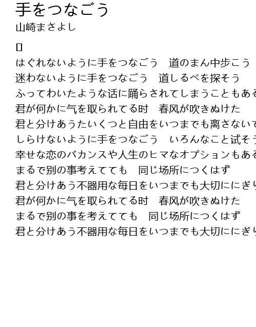 | はぐれないように手をつなごう 道のまん中步こう | |
