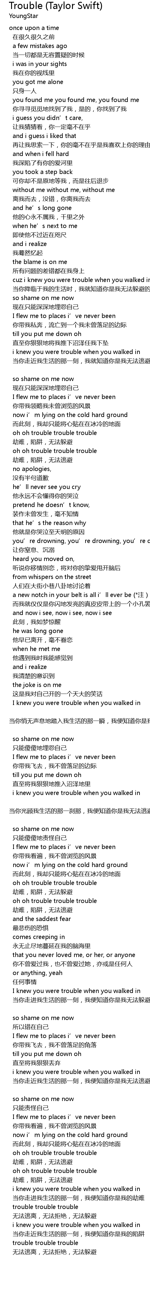 | 歌曲 | Trouble (Taylor Swift) |