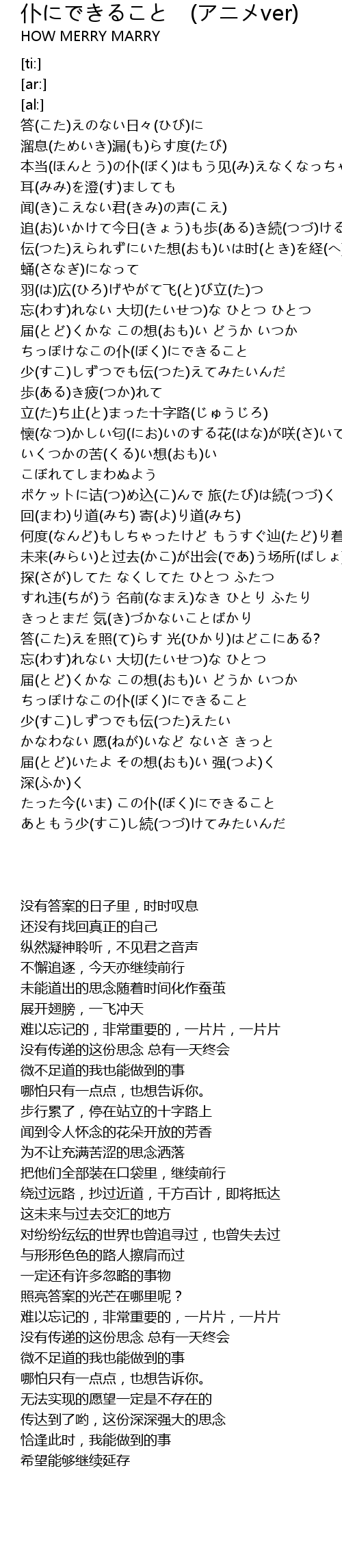 | [04:00.63] | たった今(いま) この仆(ぼく)にできること |