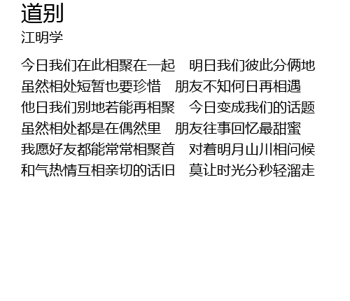 | 我愿好友都能常常相聚首 对着明月山川相问候 | |