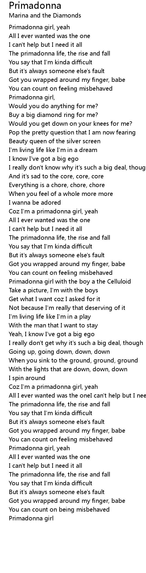Coz I'm a primadonna girl, yeah