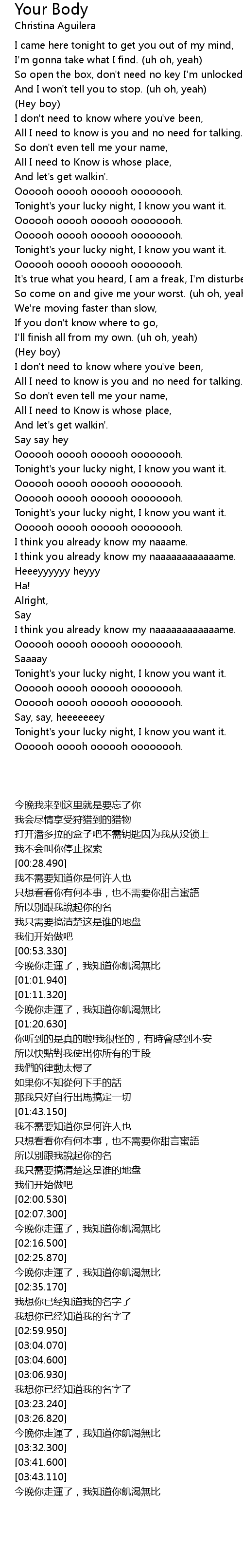 Your Body 歌词