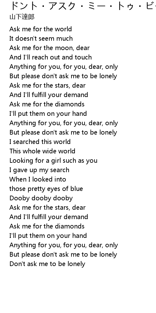 Don't ask me to be lonely |