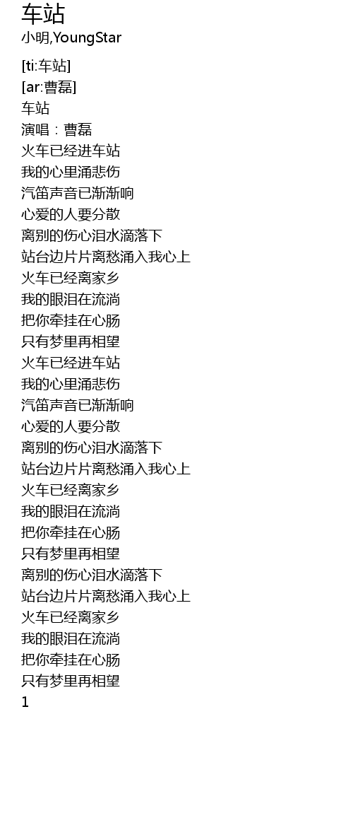 | [01:07.50] | 站台边片片离愁涌入我心上 |