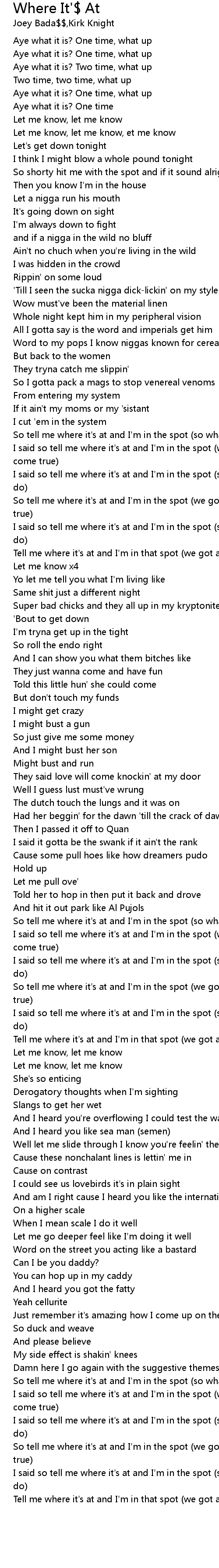 So tell me where it's at and I'm in the spot (we got a lot to come true) |