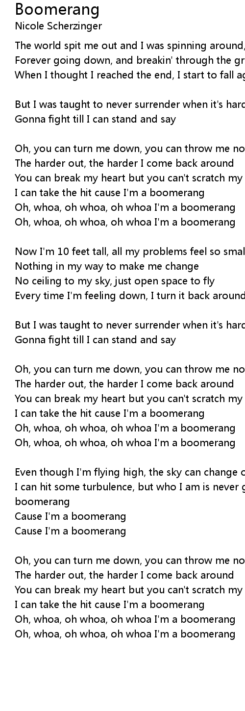 Oh, whoa, oh whoa, oh whoa I'm a boomerang |