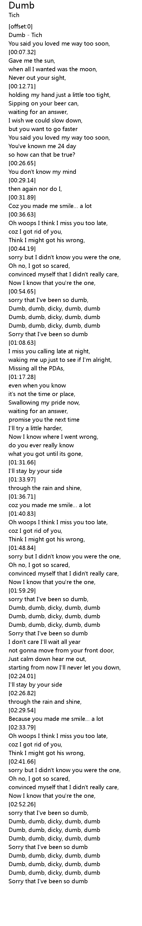 | [03:00.74] | Dumb, dumb, dicky, dumb, dumb |