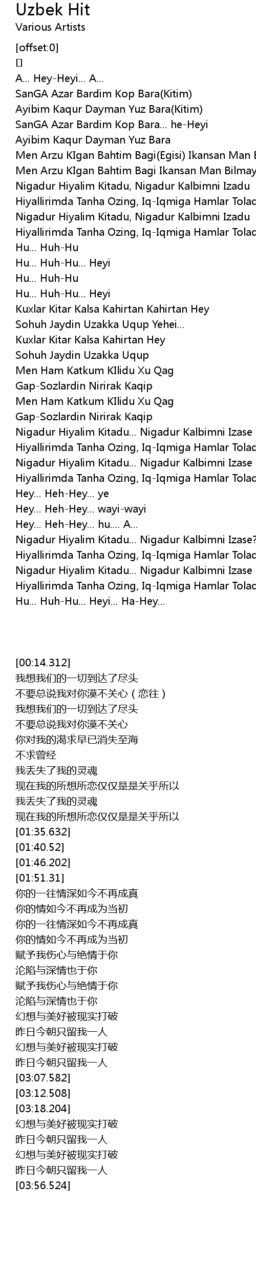 | [02:59.507] | Hiyallirimda Tanha Ozing, IqIqmiga Hamlar Toladu... |
