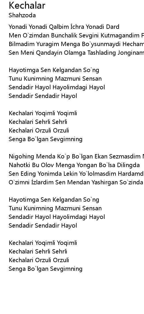 | Nahotki Bu Olov Menga Yongan Bo`lsa Dilingda | |