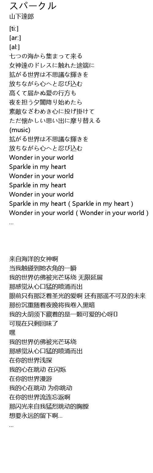 | [03:41.66] | Wonder in your world(Wonder in your world) |