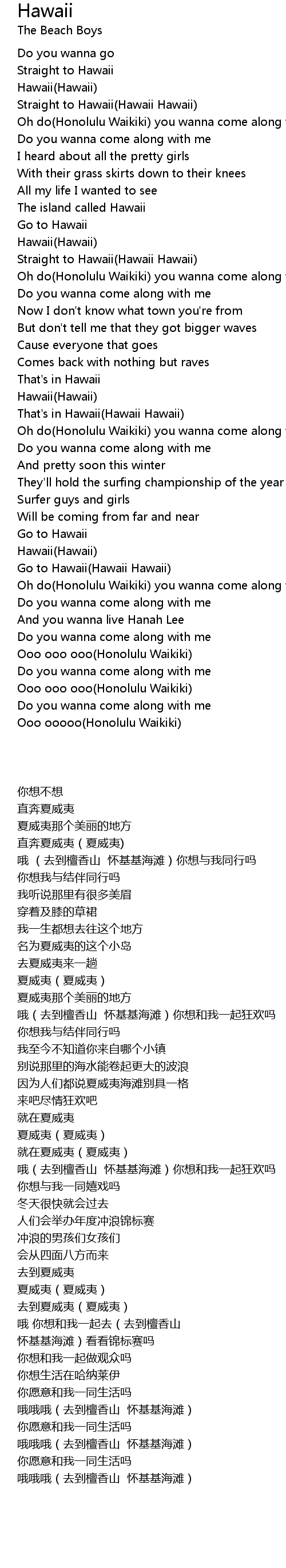 Oh do(Honolulu Waikiki) you wanna come along with me |