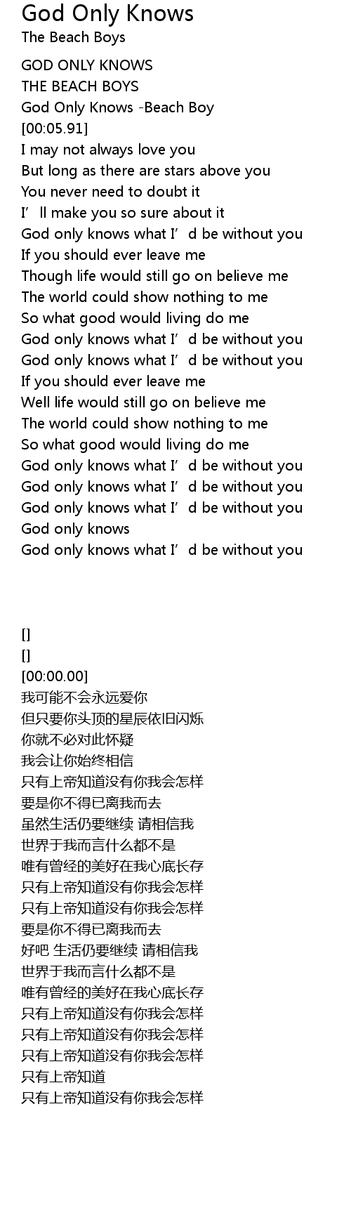 | [00:59.82] | 只有上帝知道没有你我会怎样 |