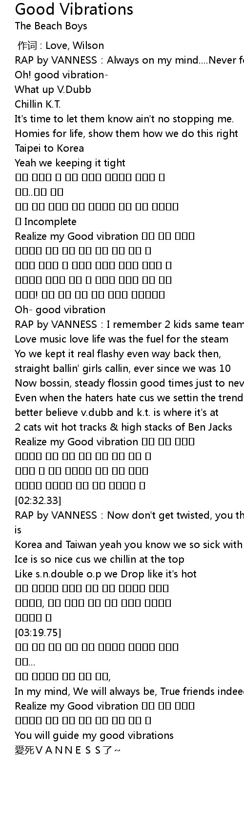 | [03:38.35] | Realize my Good vibration 네게 등을 기대면 |