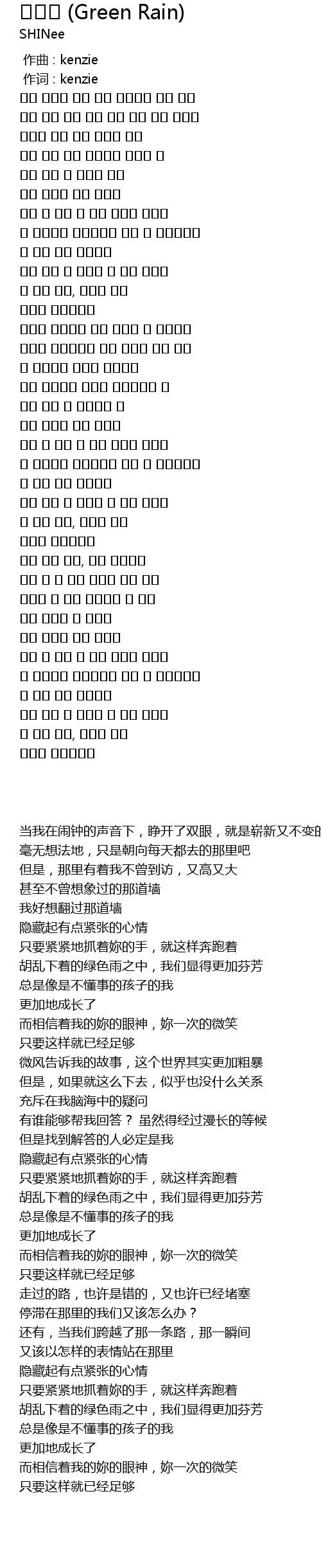| 歌曲 | 초록비 (Green Rain) |