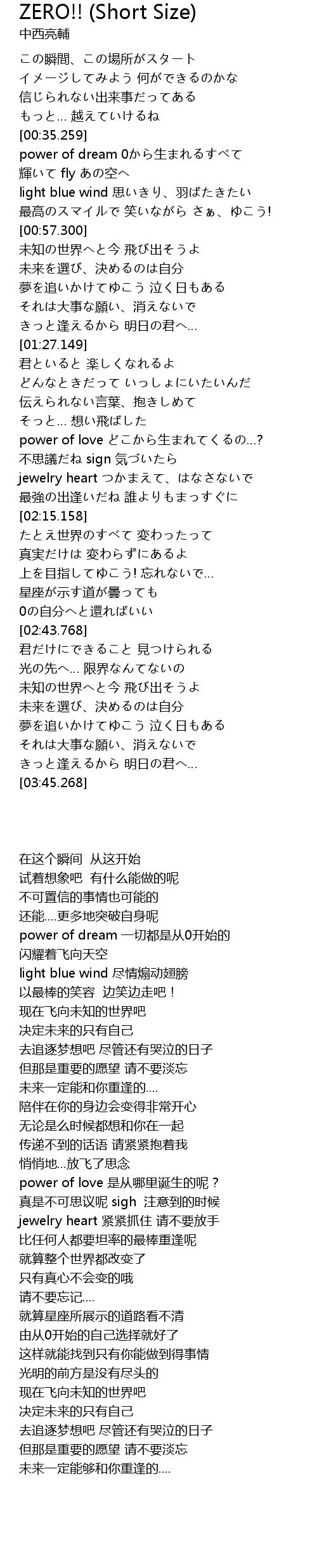 | [00:35.419] | power of dream 0から生まれるすべて |