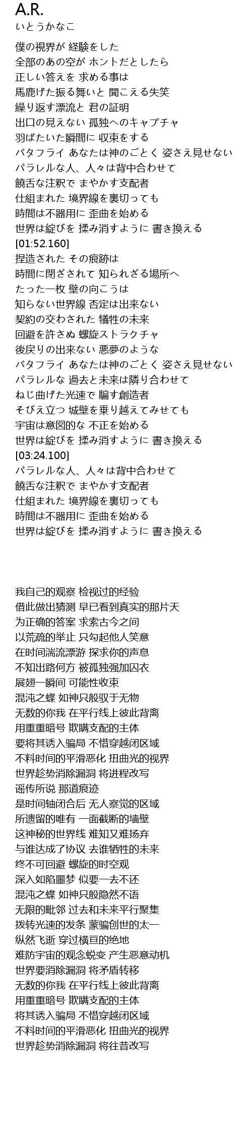 | [02:19.500] | 知らない世界線 否定は出来ない |