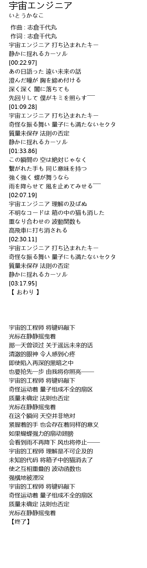 | [00:12.14] | 宇宙エンジニア 打ち込まれたキー |