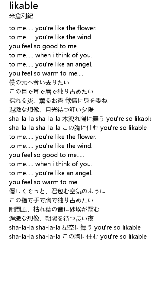 | sha-la-la sha-la-la この胸に住む you're so likable |