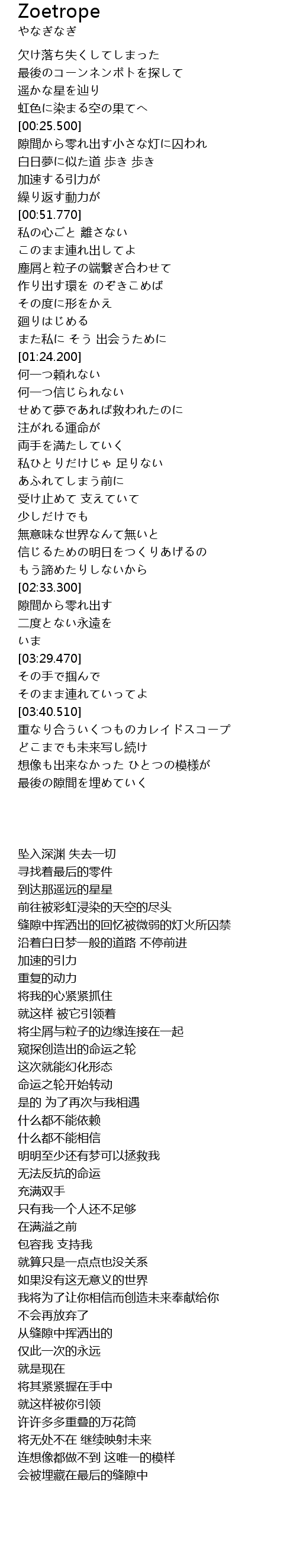 | [03:41.450] | 重なり合ういくつものカレイドスコープ |