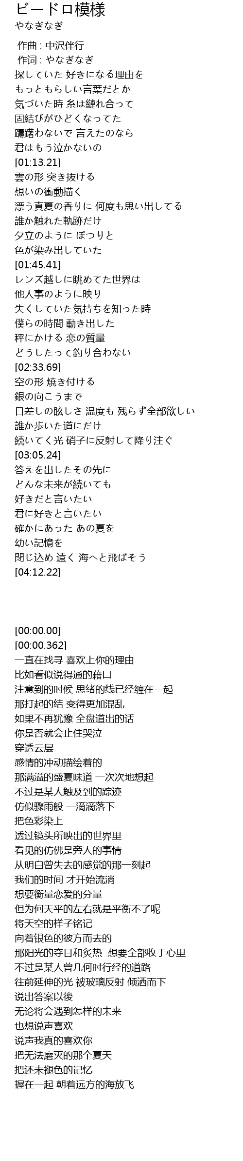| [00:01.00] | 作词 : やなぎなぎ |