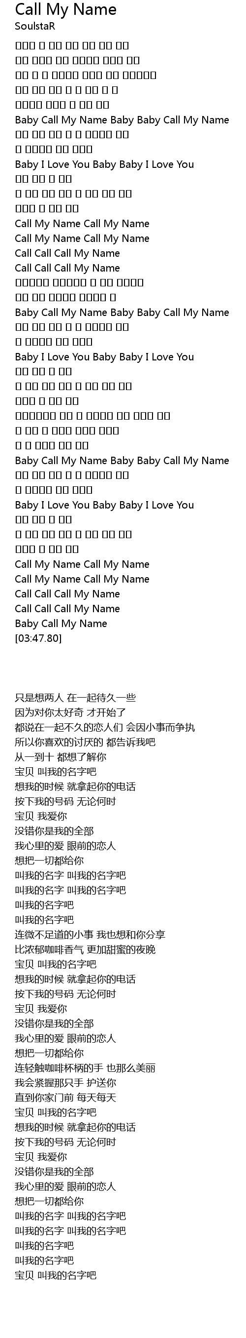 | [03:37.29] | Call Call Call My Name |