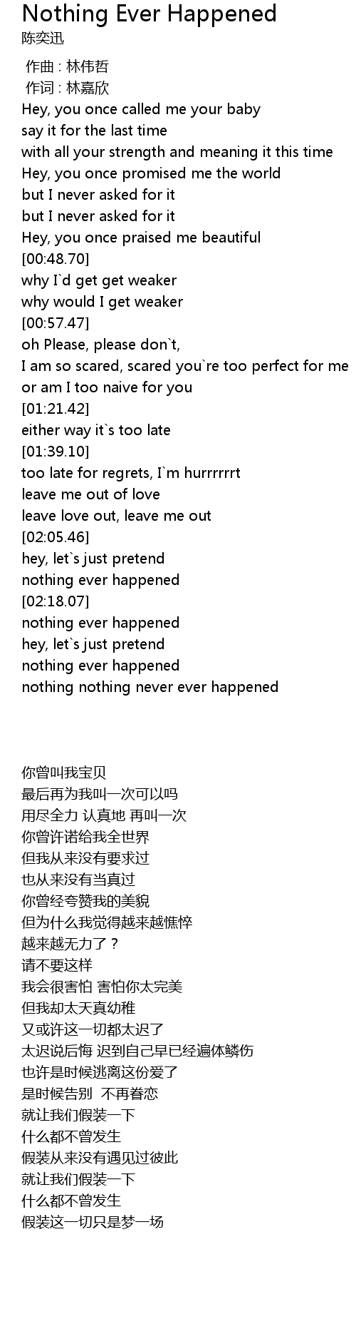 | [02:18.58] | nothing ever happened |