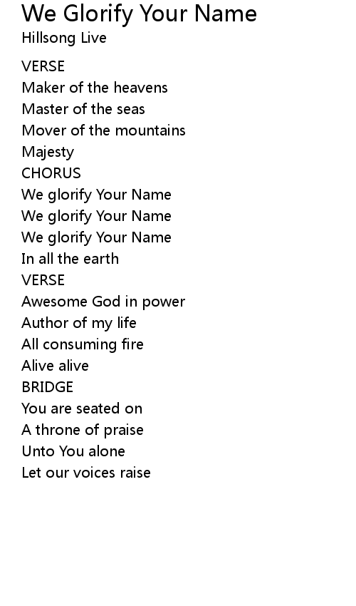 | We glorify Your Name | |