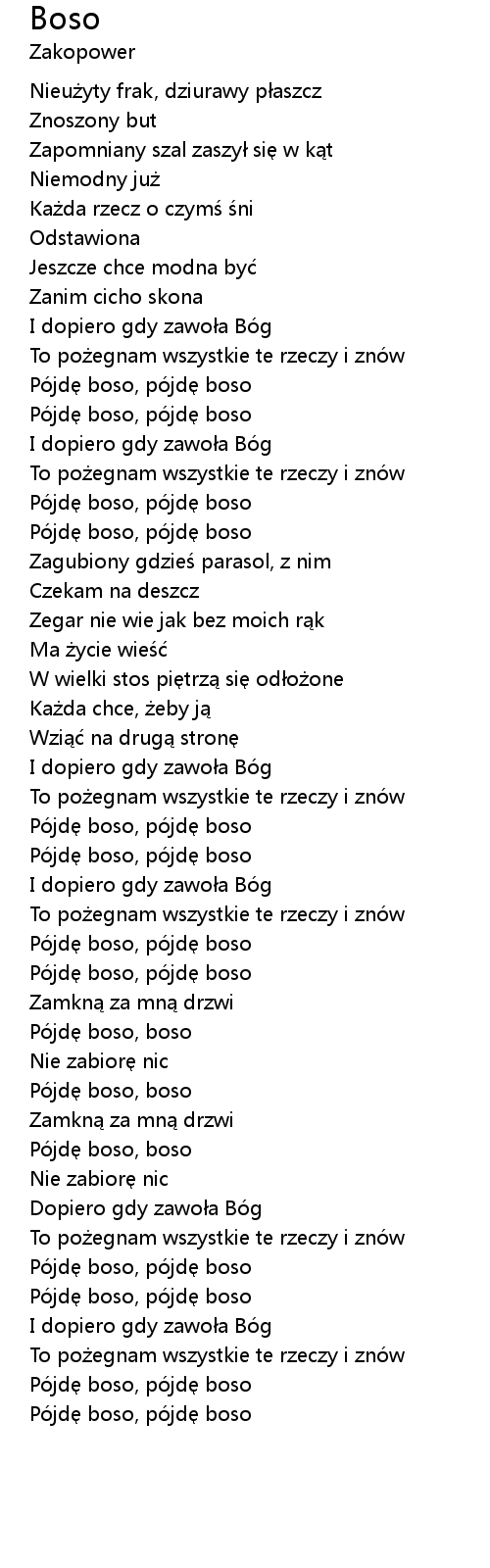| [00:48.44] | Pójdę boso, pójdę boso |