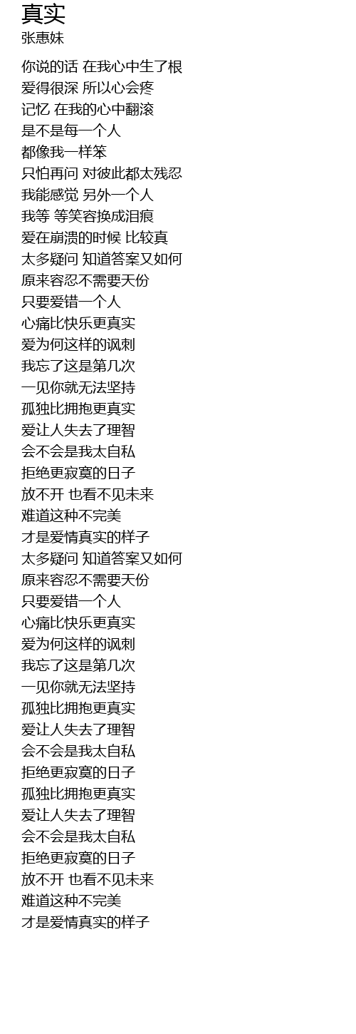| 歌曲 | 真实 |