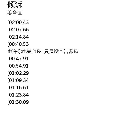 | [02:22.03][00:40.53] | 也许你也关心我 只是没空告诉我 Mm~ |